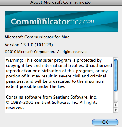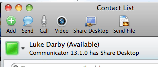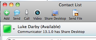 Microsoft have released a patch for Communicator 2011 for Mac (13.1.0) Essentially it’s the addition of desktop sharing. I think I’m more pleased about the fact there is obviously work going into this client than I am about the actual addition 🙂
