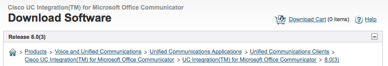 This is daft, I always found the download this way. I started going through the menu’s under Download Software, this took near on 30 mins of going down each avenue, only to not find it! Eventually I find it. So to save you all the incredulous searching here’s where it is! Cisco Unified Communications for Microsoft Office Communicator download